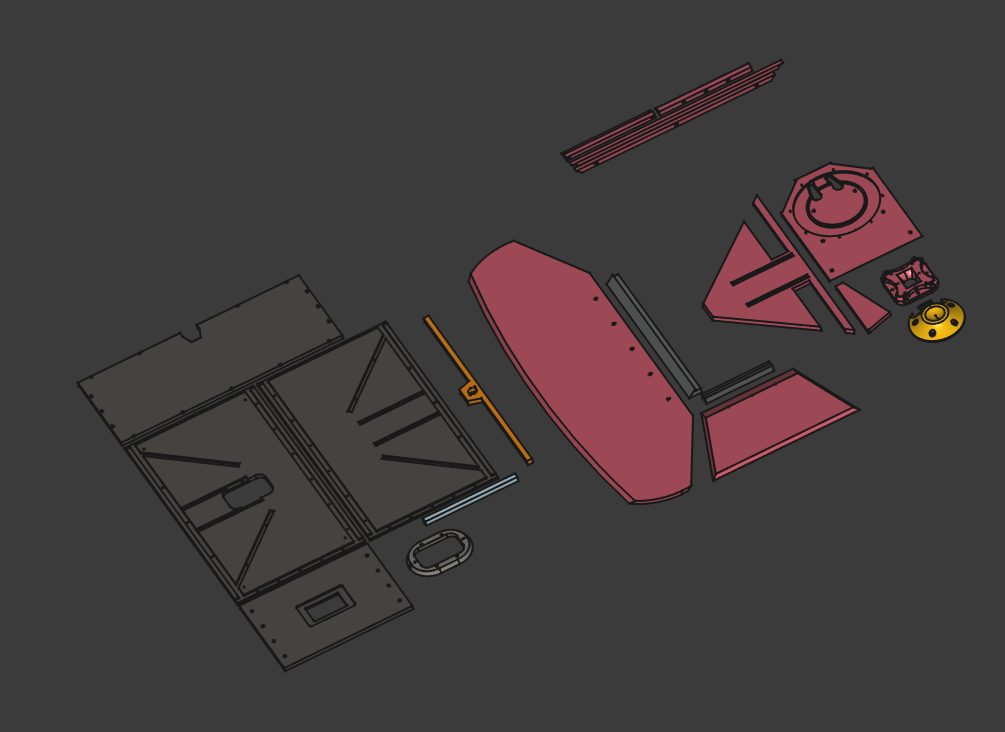 Afterwards, I made an assembly using the FreeCAD assembly workbench. I mostly used Distance joints with a distance of 0mm to put faces onto each other, but also to put them into the same plane, even if they were not facing each other (imagine two faces looking into the same direction, but one is stacked on top of the other one and you want them to be in the same plane). Sometimes, I used Fixed joints, namely when I wanted two edges to touch each other. Where necessary, I used Distance joints with a non-zero distance to place objects in place.