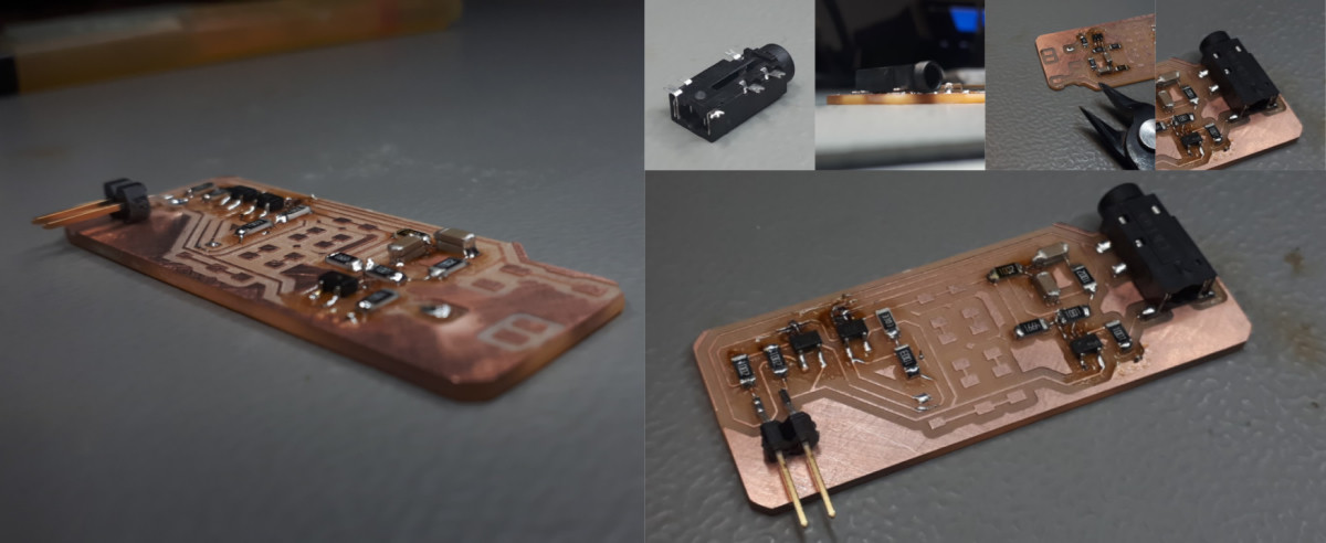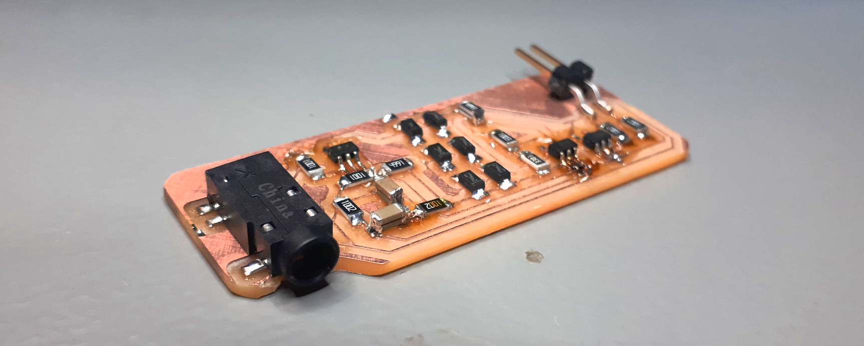 Before designing a minimal modular setup, ordering parts, and building it I wanted to build an sound-making circuit with parts already available at the local Fab Lab. This way, I wanted to find out about small, non-obvious pitfalls in the design and the fabrication process.