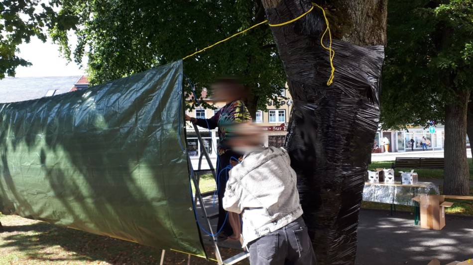 - Use another surface or rig it differently. The tarp was bent by the wind which made spraying rather complicated. However, if there is no other possibility it might still be fine. AFter all, the piece turned out well.