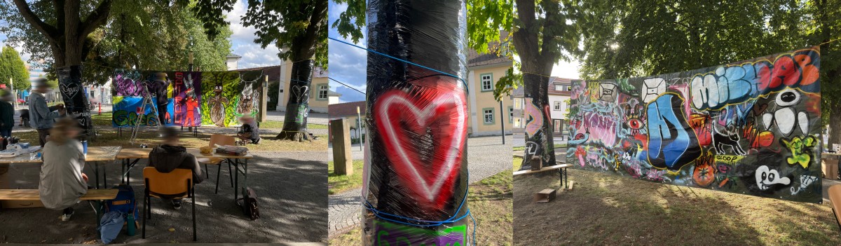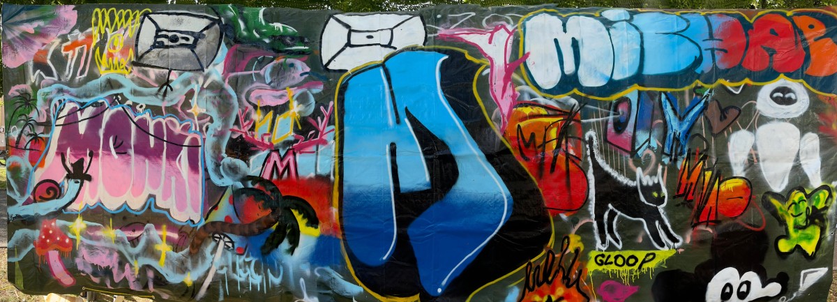 On September 13, 2025, we had a workshop on graffiti. The workshop started at 1pm and took around 4 to 5 hours. Around ten people participated. The workshop was held by Marco Quade. Feel free to contact him if you want to have a graffiti workshop as well.